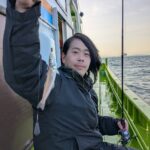 シロギス、厳しい寒さの中、サンケイスポーツ川目記者・フリーアナウンサー松本秀夫さんがシロギス釣りにチャレンジ♪