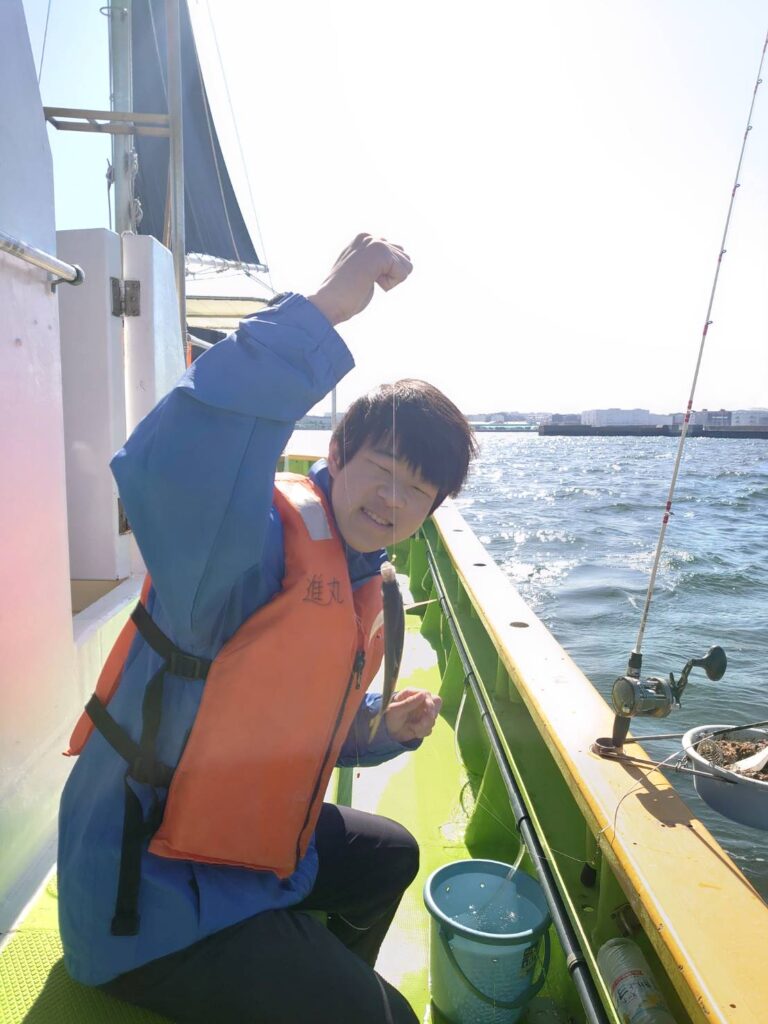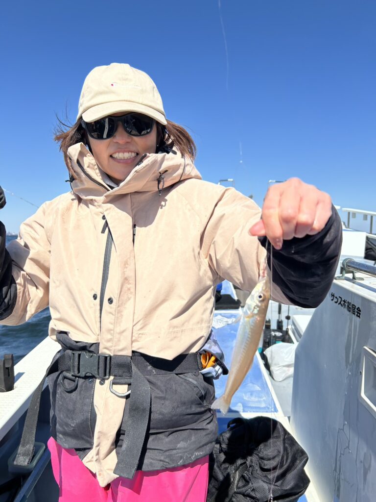 シロギス船、本日は北風強くイマイチでしたが初挑戦の方も本命ゲットーー♪
