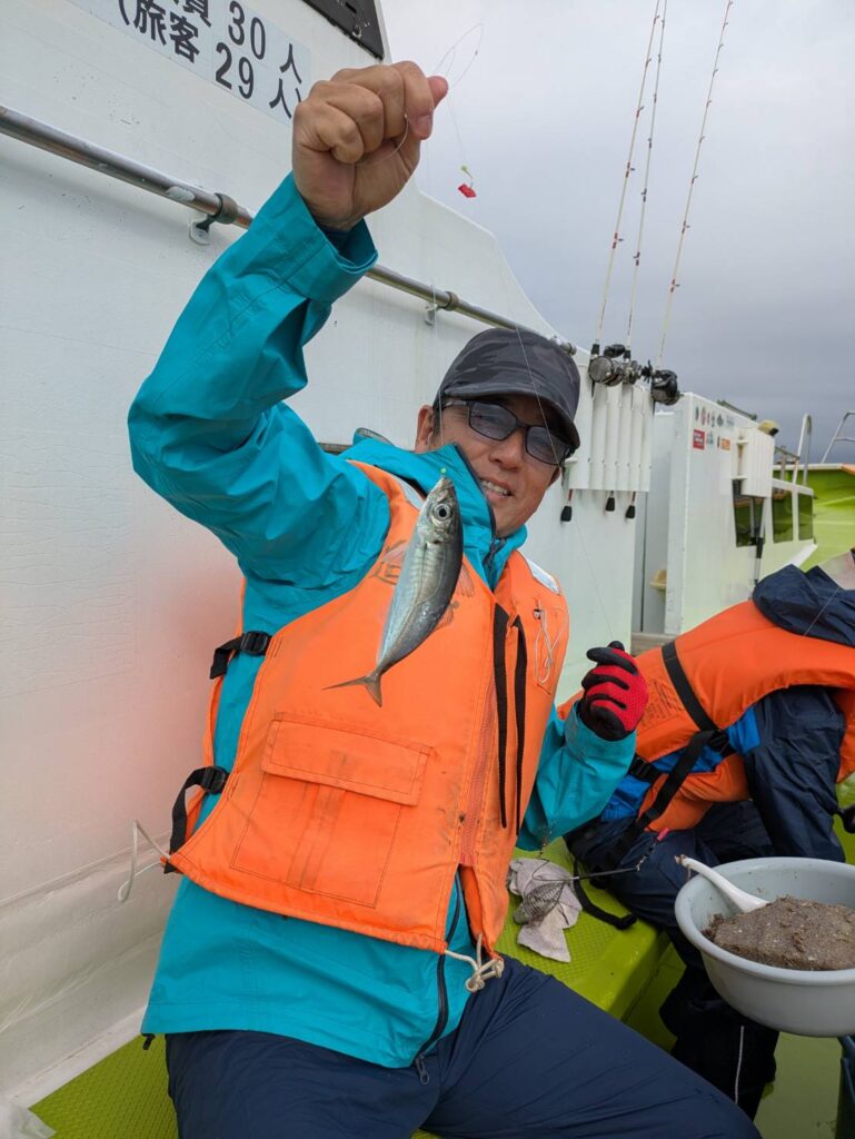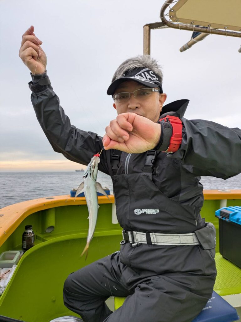 アジ船、こちらもポツリポツリと拾い釣り♪雨の中、頑張ってくださいました♪